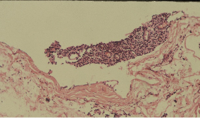 Fig 3 : low power view of neoplasm at histology. H&E x100